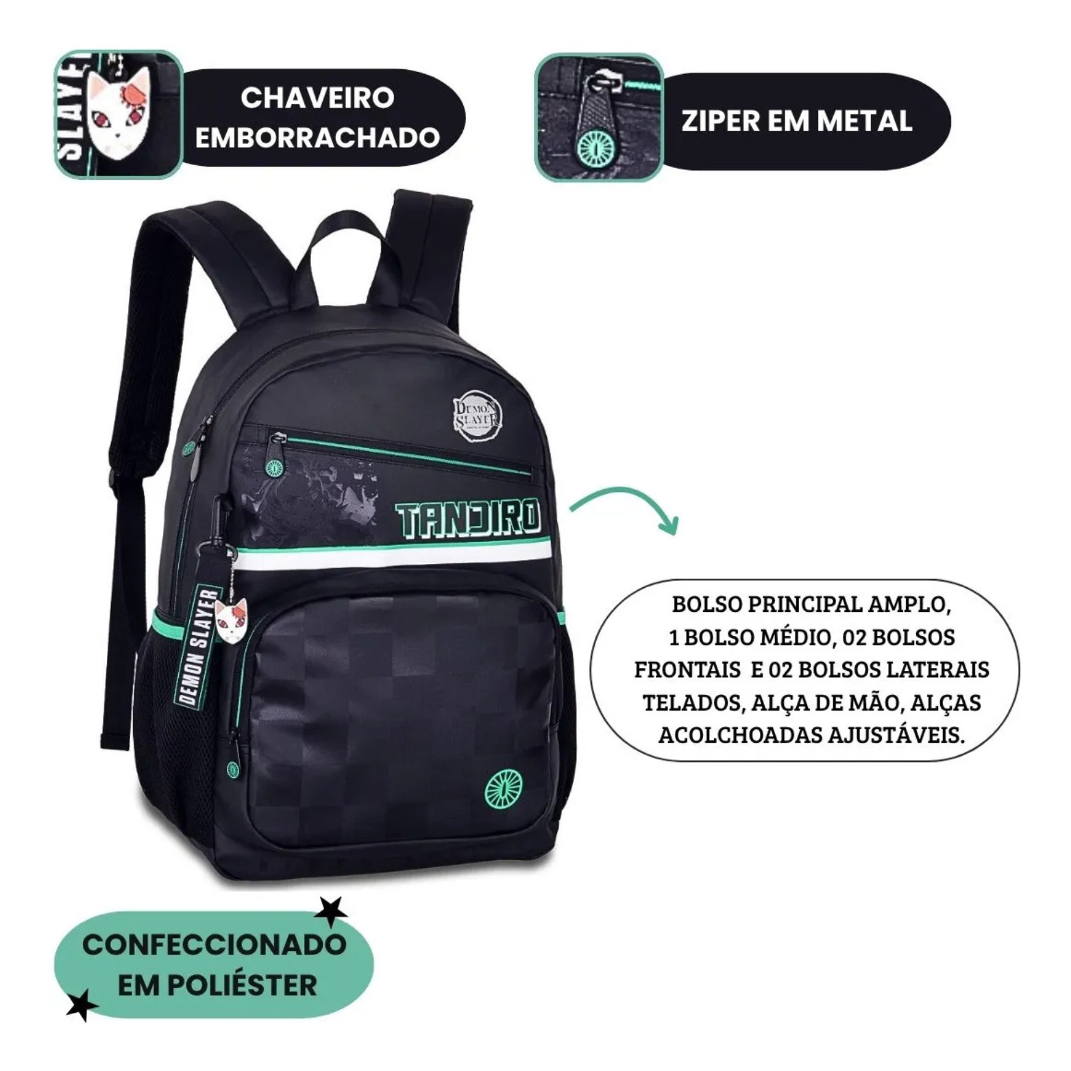 A Mochila de Costas Demon Slayer da Clio foi desenvolvida para quem busca funcionalidade, conforto e um visual marcante inspirado no famoso anime. Produzida em poliéster resistente, oferece durabilidade e praticidade para a rotina escolar ou uso diário.